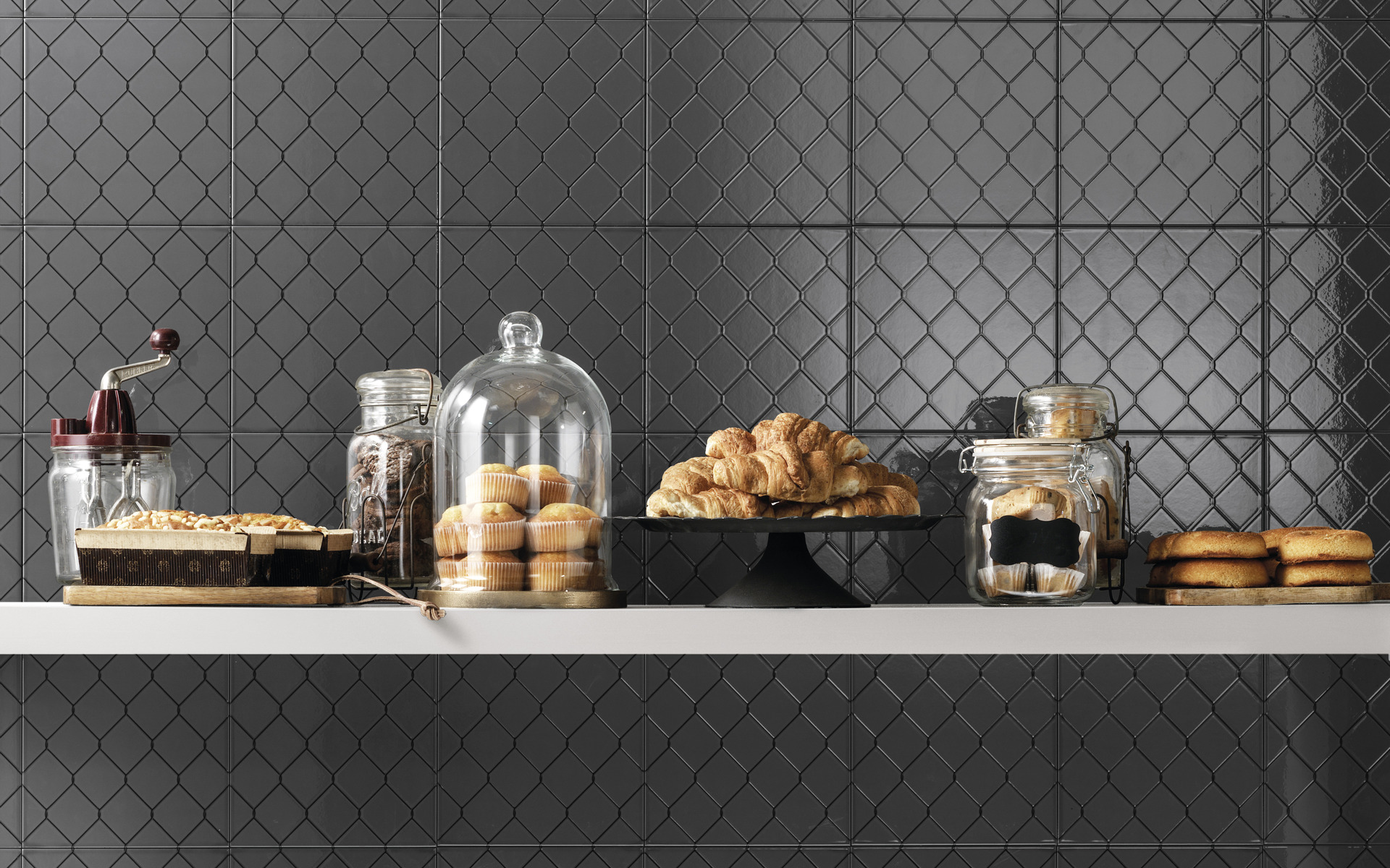 L’originalité de la décoration rythme les surfaces grâce à la régularité de petites et grandes mailles, ton sur ton ou en contraste avec les fonds. Des lieux privés, des espaces publics comme les bars, les centres de bien-être ou les boutiques se parent d’une essentialité rationnelle en mesure de marquer les esprits.